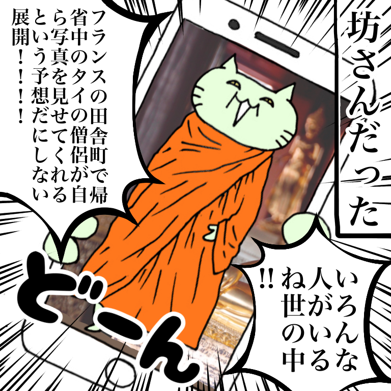 タイの僧侶に色々話聞きたかったがフランス語全く分からんからな…残念。